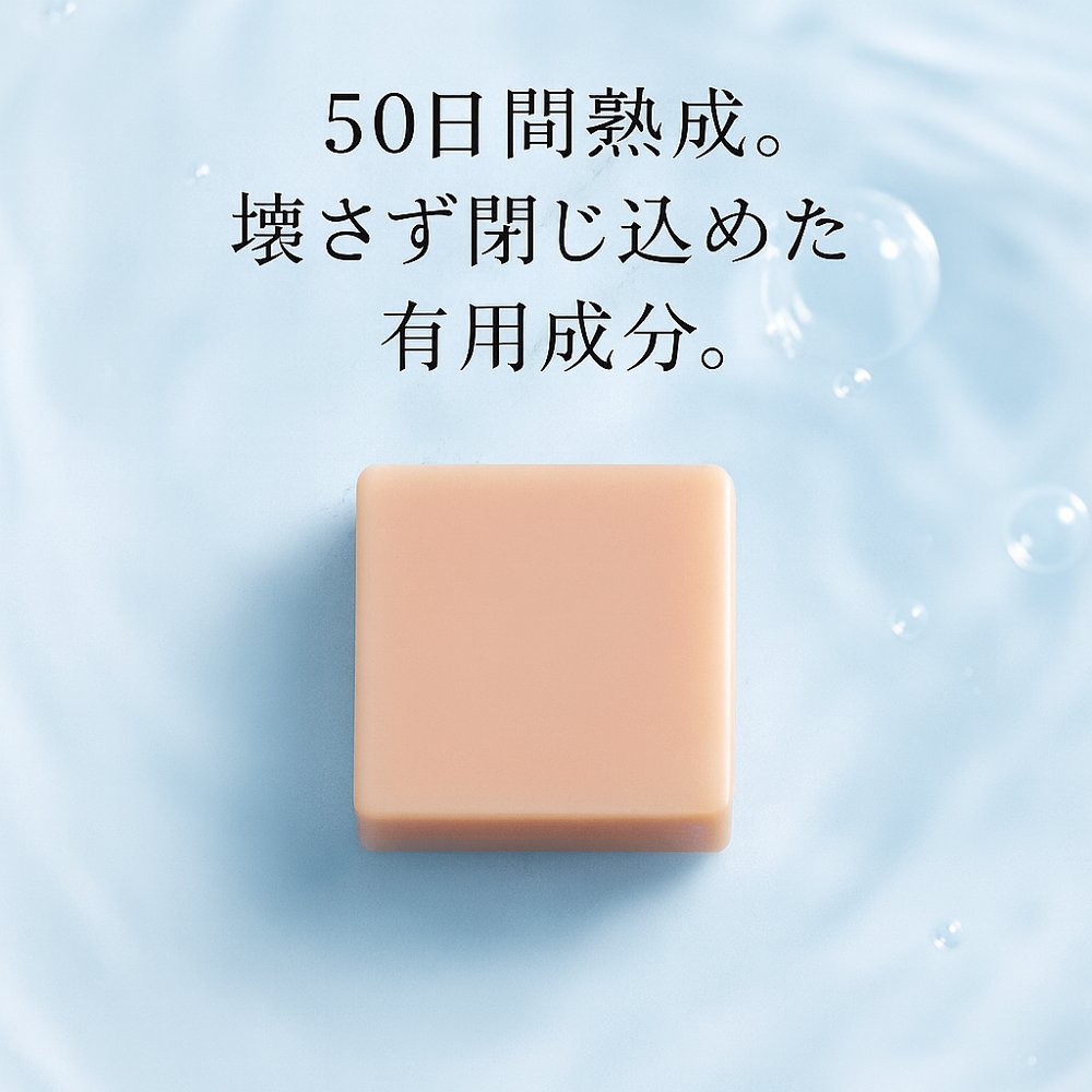 石鹸作りの最高峰、コールドプロセス製法(低温製法)で作られた石鹸は余分な熱を加えず、低温で50日かけてじっくり作るため、 有用成分を壊すことなく、そのまま閉じ込める事が出来ます。